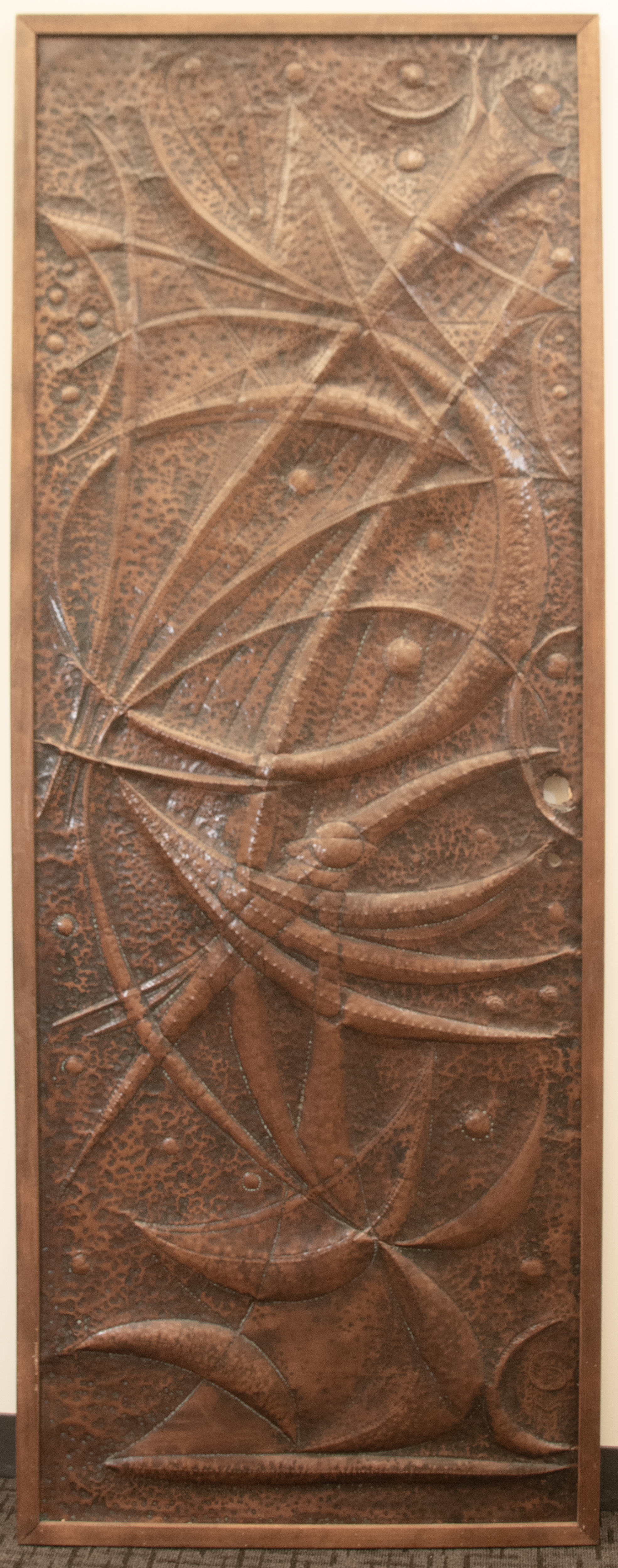 This panel is but one example of Polony Mountain's skill with the repousse technique and her ability to create movement within an otherwise static material.