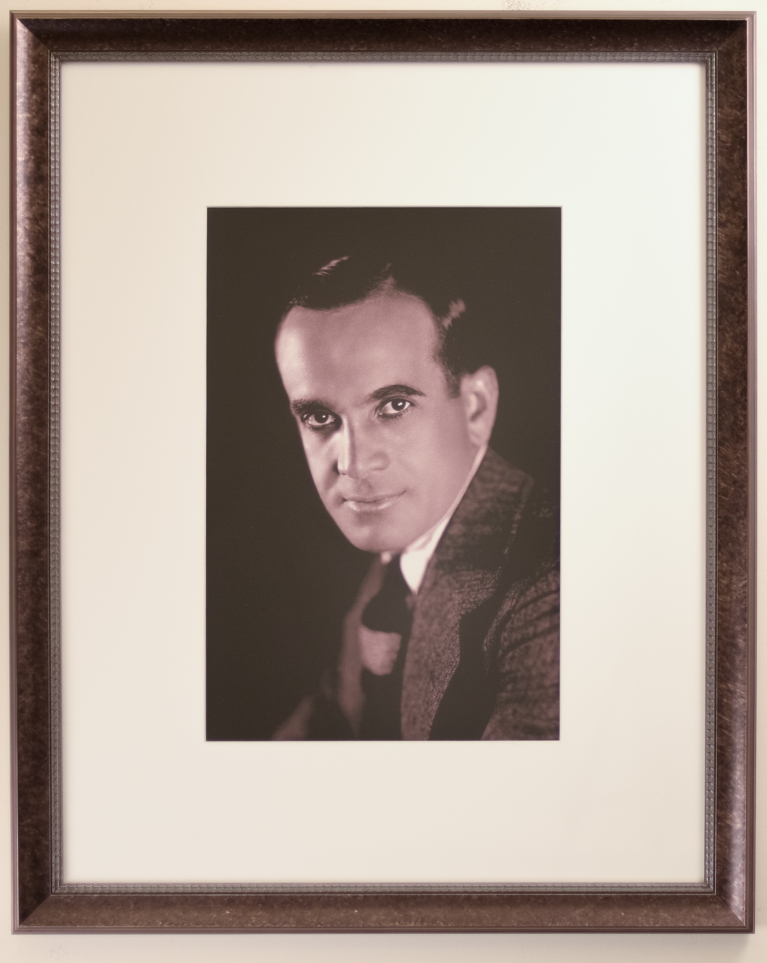 Asa Yoelson-Al Jolson was born in Lithuania. He changed his name to Al Jolson once he started to perform. Jolson was a celebrated singer and dancer on Broadway prior to gaining worldwide fame as the star of "The Jazz Singer". This 1927 film signaled the transition from silent pictures to sound. Known as "The World's Greatest Entertainer," Jolson's legacy is complicated by the modern-day controversy over his frequent use of blackface. Jolson extended his career by becoming a popular recording star and the singing host of radio shows. He saw his life celebrated in the 1946 movie musical "The Jolson Story." In this photograph, Jolson looks directly at the camera. Hixon artistically altered Jolson's eyes by emphasizing them with dark markings that outline his brow and eyelids.