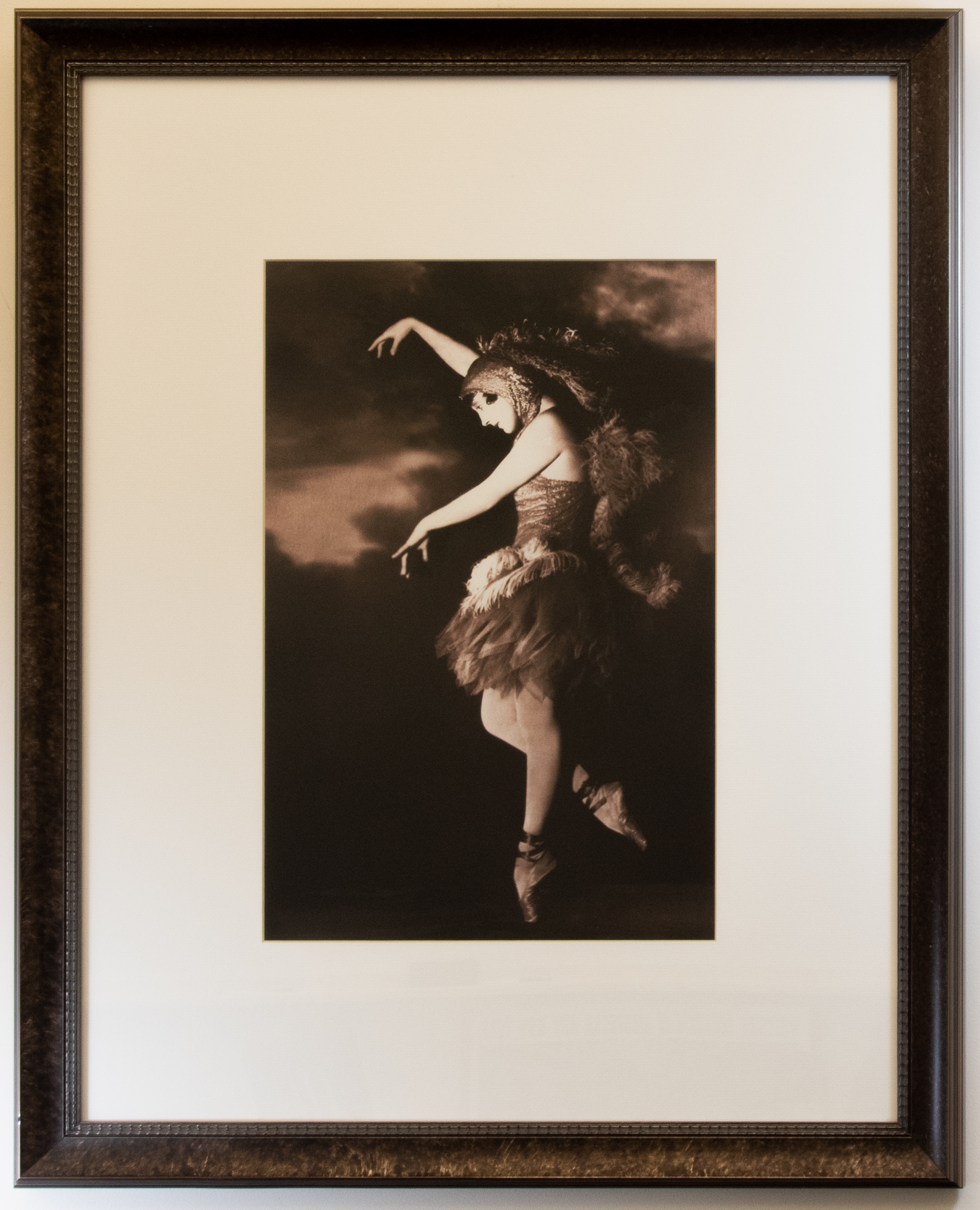 Australian dancer and swimmer Annette Kellerman (1887-1975) gained international fame and a long-lasting place in American vaudeville scene as the "Siren of the Sea." Kellerman had to wear leg braces as a child, but as an adult she was known as both a health advocate and a sex symbol. While Kellerman's dancing was secondary to her swimming and diving feats, she nevertheless integrated dance into her shows, which often featured performers posing as water nymphs. In this photograph, an ethereal background and Kellerman's outlandish costume, reminiscent of a sea creature, add movement and mystery to her poised form.