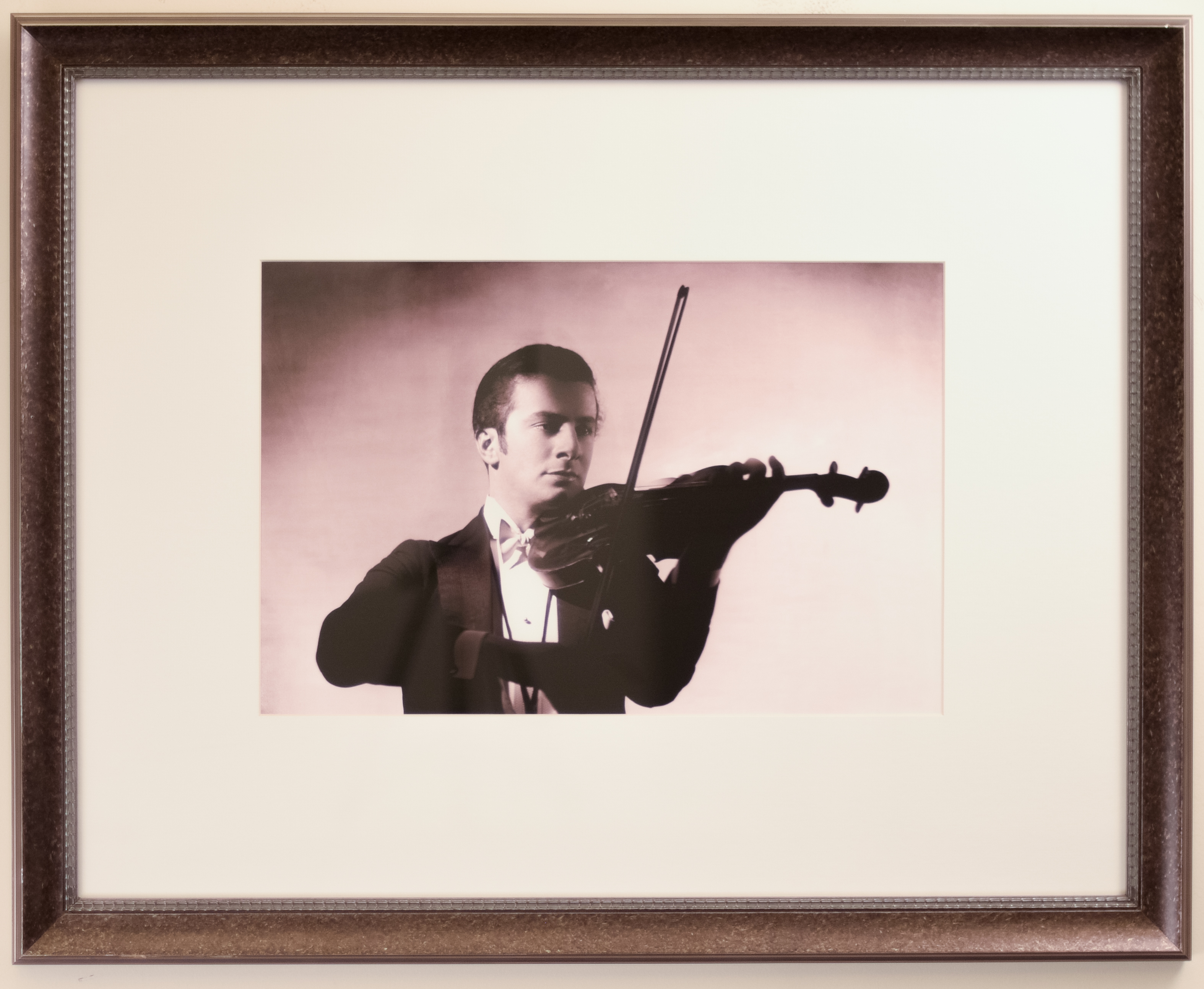 Born in Stockholm, Sweden, Jan Rubini was an actor, concert violinist, and composer. He was known for Clancy Street Boys (1943), Bal Tabarin (1952) and Jan Rubini and Orchestra (1937). He stands erect in this photograph in concert attire while holding his violin in ready position. His facial expression appears focused. Although the light that illuminates his face obscures his violin in shadow, one still gets the sense that the expressive potential of this portrait is channeled through his instrument.
