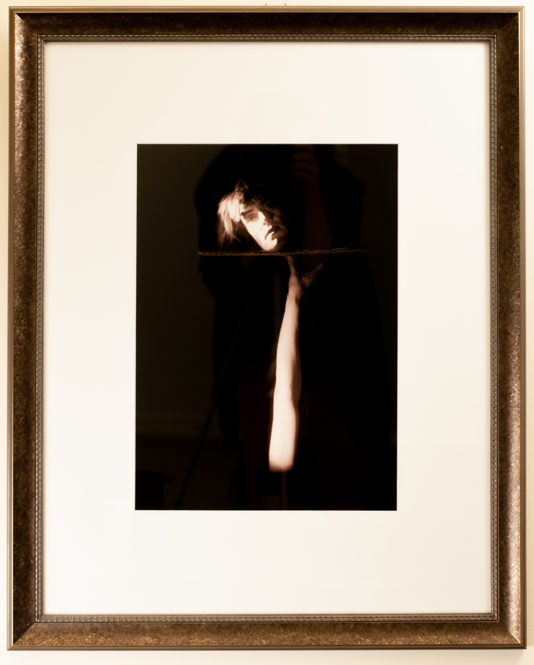 John Sigvand “Ole” Olsen and Harold Ogden “Chic” Johnson were American comedians of vaudeville, radio, stage, motion pictures, and television. Olsen and Johnson partnered in 1914 perfecting their comedy during the vaudeville era. Olsen and Johnson were also Broadway sensations most noted for their comedy “Hellzapoppin” that opened in 1938 and would later become a major motion picture. Olsen and Johnson had occasional television appearances later in their career. This photograph shows a different side of the duo by creating the illusion that Olsen's head is being served on a platter held up by Johnson. Total darkness surrounding the head, arm, and platter make this illusion possible and is confirmed by Olsen's lifeless facial expression and the tilt in his seemingly unsupported head.