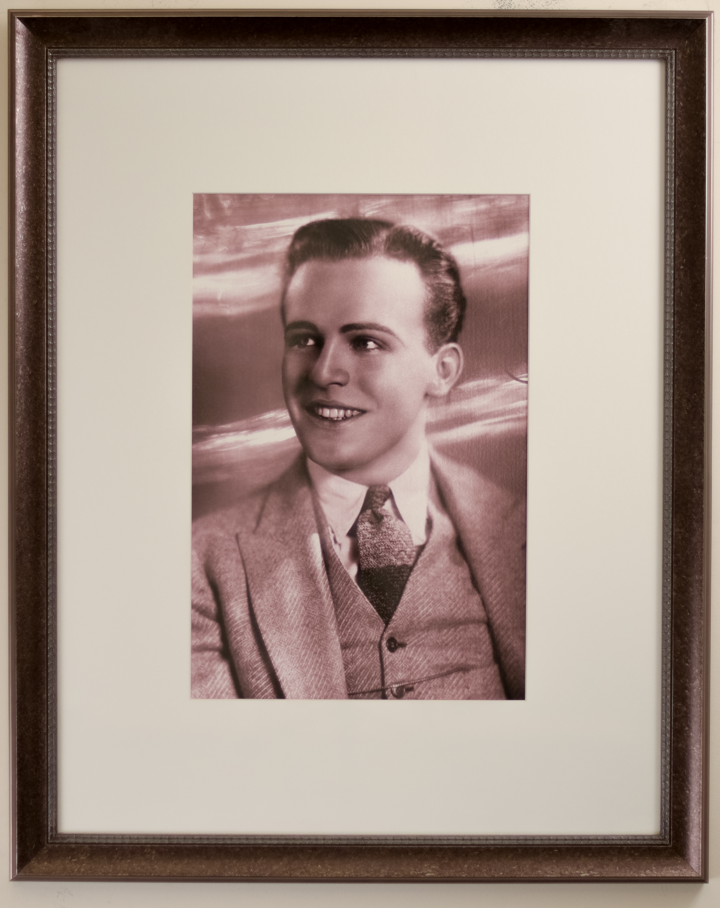 This unknown figure is meticulously dressed in a light herringbone suit jacket and matching vest. His attire is accentuated by his knit tie and watch chain, that stretches across his chest coming to a rest in his vest fob pocket. This dapper character is fastidiously groomed, as apparent with his clean shaven visage, defined eyebrows and his neatly quaffed hair style. The figure is centered in the photograph gazing slightly upward to the right, wearing a hopeful smile. The background appears chemically enhanced, creating an illusion of stratus clouds behind the model.