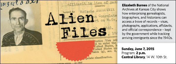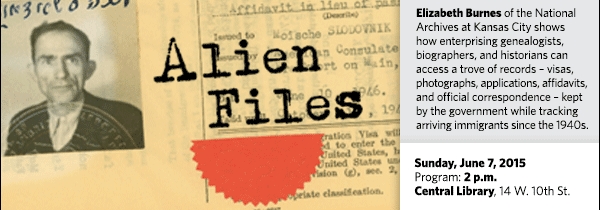 Archivist Elizabeth Burnes of the National Archives of Kansas City shows how the enterprising genealogist, biographer, or historian can access this treasure trove of information. The National Archives preserves and makes available to researchers more than 450,000 A-Files for individuals who were born in 1910 or earlier, many of them with direct connections to this area.