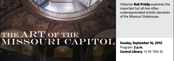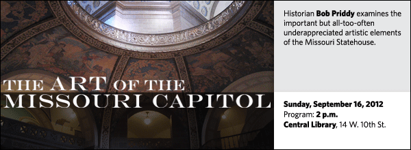 In 1911 art-minded Missourians hired the nation’s leading artists to decorate the new Missouri statehouse, and the works they created were considered among the finest to adorn any state capitol. Historian Bob Priddy describes these treasures – many of which go unnoticed and unappreciated even by those who daily walk the building’s marble halls.