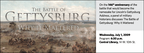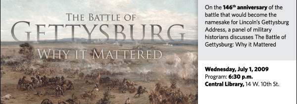 A panel of military historians will discuss the significance of the Battle of Gettysburg on Wednesday, July 1, at 6:30 p.m. at the Central Library, 14 W. 10th St.