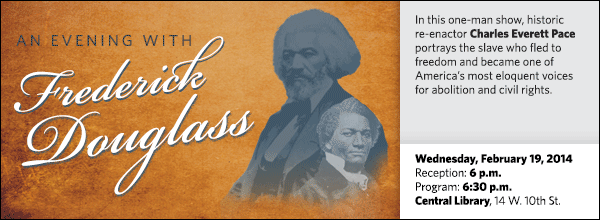 Veteran re-enactor Charles Everett Pace brings his one man show to Kansas City to portray prominent abolitionist and social reformer Frederick Douglass.