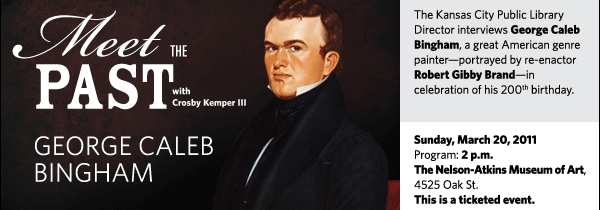 Location: The Nelson-Atkins Museum of Art Meet the Past with Crosby Kemper III returns for a conversation with George Caleb Bingham, whose paintings of Missouri and the American frontier have earned him a reputation as one of America’s greatest genre painters of the 19th century. Bingham will be portrayed by Metropolitan Ensemble Theatre veteran Robert Gibby Brand, who portrayed Edgar Snow at a previous Meet the Past event. The program takes place on the 200th anniversary of Bingham’s birthday. This presentation is part of the Missouri Valley Speakers Series. Co-sponsored by the Nelson-Atkins Museum of Art.
