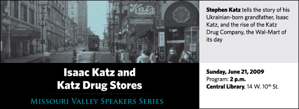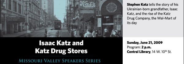 Stephen Katz tells the story of his Ukrainian-born grandfather Isaac Katz and the rise of the Katz Drug Company, the Wal-Mart of its day, on Sunday, June 21, at 2 p.m. at the Central Library, 14 W. 10th St.