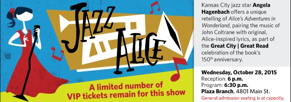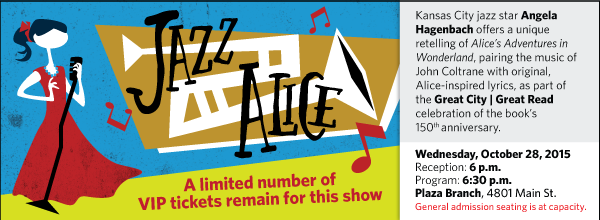Kansas City jazz legend Angela Hagenbach leads a diverse ensemble cast in an original and unique retelling of the Lewis Carroll classic. In this version, Alice explores Wonderland while accompanied by the music of John Coltrane (with original lyrics written by Hagenbach).