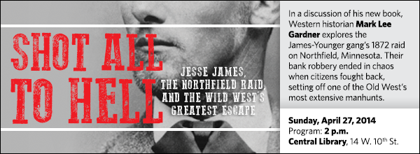 In a discussion of his new book, Shot All to Hell: Jesse James, the Northfield Raid, and the Wild West’s Greatest Escape, Western historian, writer, and musician Mark Lee Gardner recreates this bloody, desperate episode. With compelling details that chronicle the two-week chase that followed — the near misses, fateful mistakes, and final shootout on the Watonwan River — Gardner delivers a galloping, true tale of frontier justice.