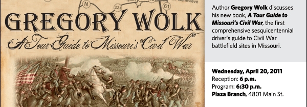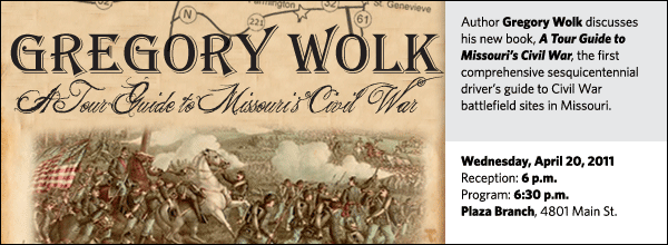 Author Gregory Wolk discusses his new book, A Tour Guide to Missouri’s Civil War, the first comprehensive sesquicentennial driver’s guide to Civil War battlefield sites in Missouri.