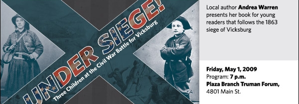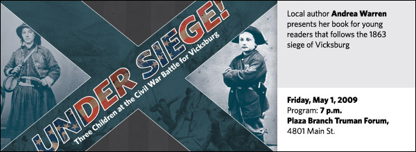 On Friday, May 1, at 7 p.m. at the Plaza Branch, 4801 Main St., local author Andrea Warren presents her recently released nonfiction book for young adults Under Siege! Three Children at the Civil War Battle for Vicksburg.