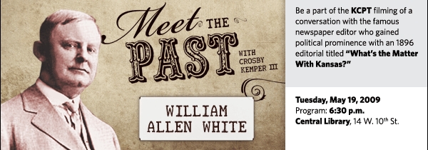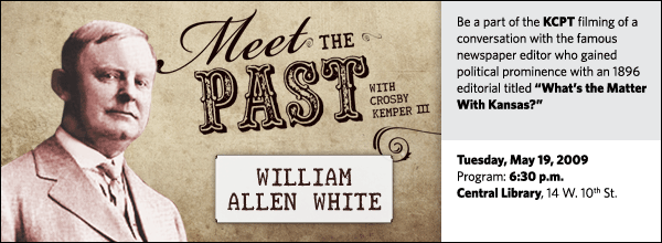 On Tuesday, May 19, at 6:30 p.m., Fred Krebs portrays William Allen White, the famous newspaper editor who gained political prominence after writing an editorial in 1896 titled "What's the Matter With Kansas?"