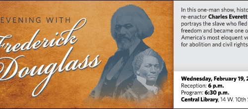 Veteran re-enactor Charles Everett Pace brings his one man show to Kansas City to portray prominent abolitionist and social reformer Frederick Douglass.