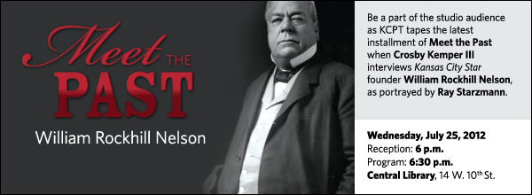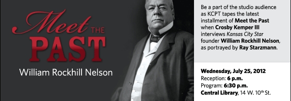 Kansas City Public Library Director Crosby Kemper III interviews Amelia Earhart, portrayed by Ann Birney, as part of the Library's Meet the Past series.