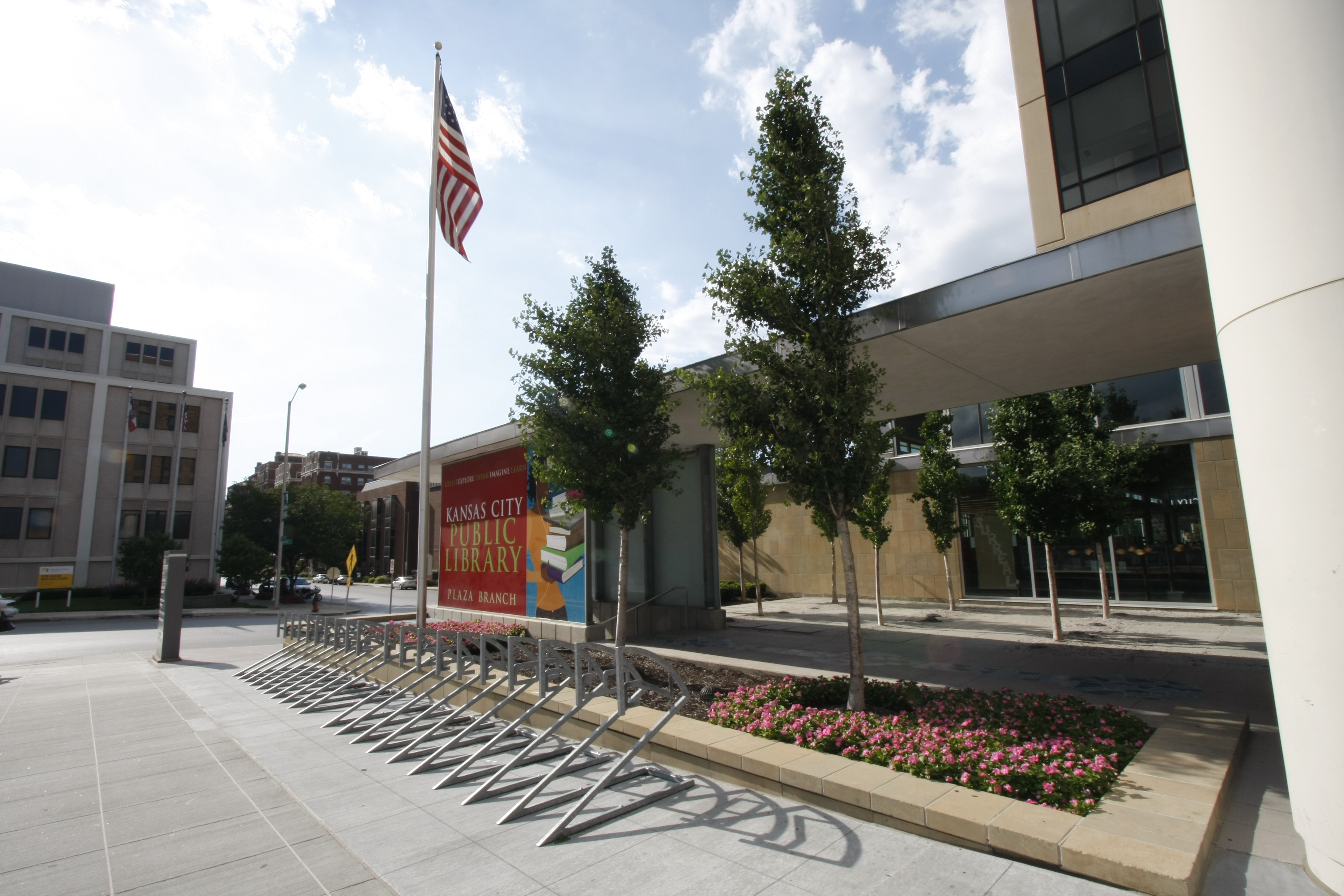 Floor-to-ceiling windows overlook the glittering Country Club Plaza with a view of Brush Creek wending its way east. Here you will find the "Good As Gold" Sculpture made of books. It serves not only the immediate area but also surrounding neighborhoods in all directions, boasting a wealth of children’s and youth resources and activities, books on arts and crafts, and ample business materials. It also has large video, compact disc, and audiobook collections.