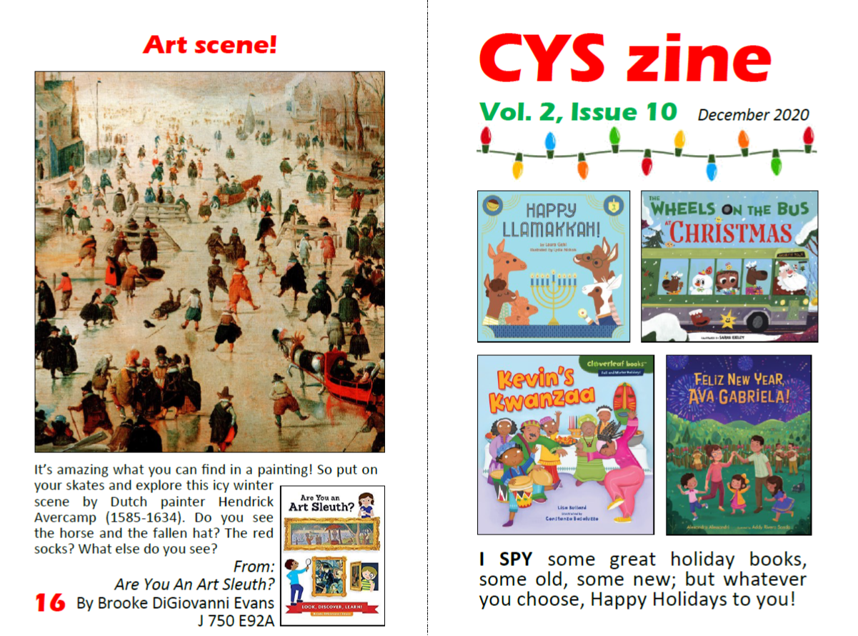 The CYS Zine is a 16-page monthly mini magazine that highlights what's new and notable in the children's department of the Central Library. Each issue is filled with new books and upcoming events, plus amazing facts, funny jokes, poetry, artwork and puzzles. Normally available at the CYS service desk, you can now download a copy online, print it, and enjoy the zine from home.