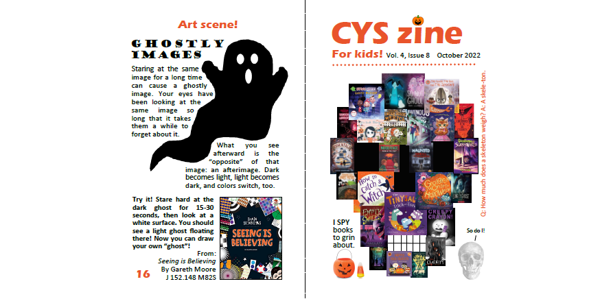 Who turns the lights off at Halloween? The lights witch, of course! Mwah ha ha! The October Central Youth Services zine for kids is a little spooky, a little kooky. And it's ready for you to print out or pick up at the Library... if you dare!